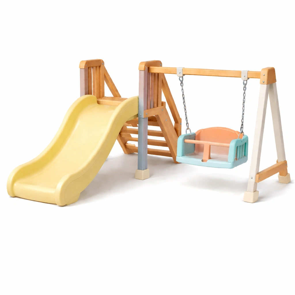Kinderspielgerät Holz Kunststoff Rutsche Schaukel Gelb Outdoor