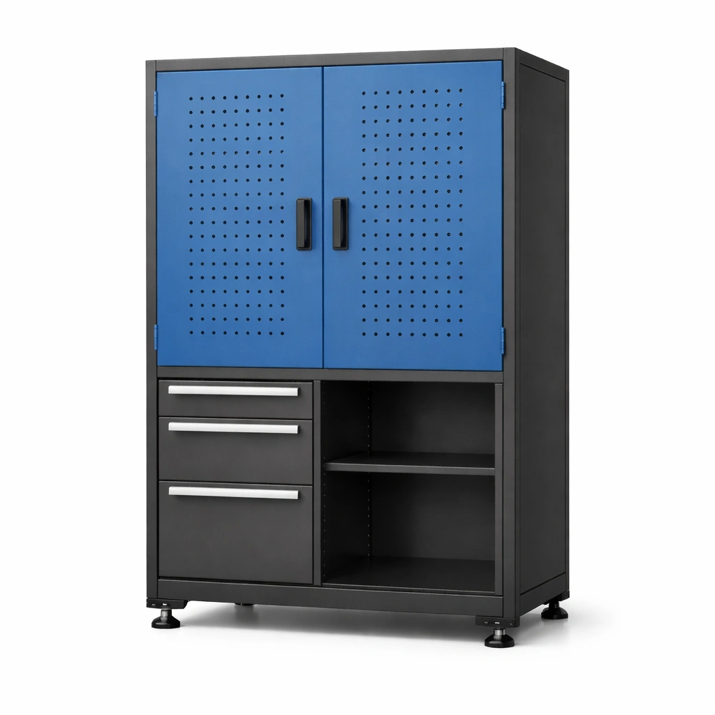 Werkzeugschrank Metall Blau Schwarz Türen Schubladen